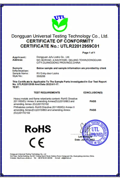 RVLockTech (Dongguan JuFu Locks Factory Co., Ltd.) was established in 2013 in Dongguan, Guangdong Province, China. We specialize in the design and manufacturing of RV locks, push locks, cam locks, compression latches, marine locks, panel locks, handle locks, and related industrial locking systems.